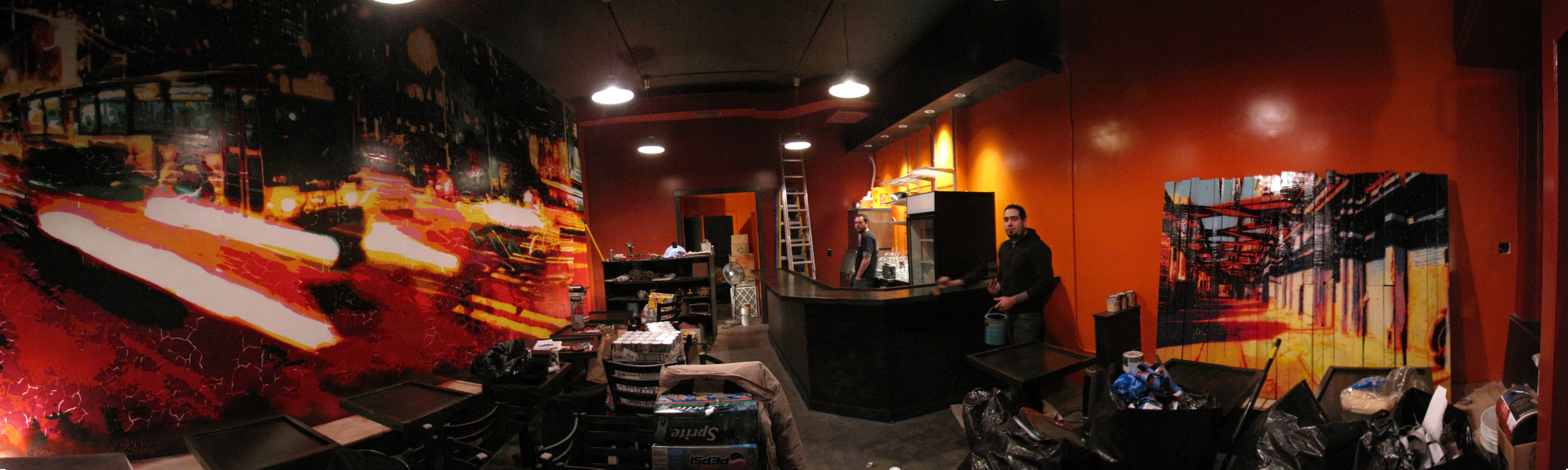 Pictures of the construction inside and outside. Construction is now finished! Above, a panorama of the Bus Stop as of 12/10/08. Click on the image to download a high-res copy.